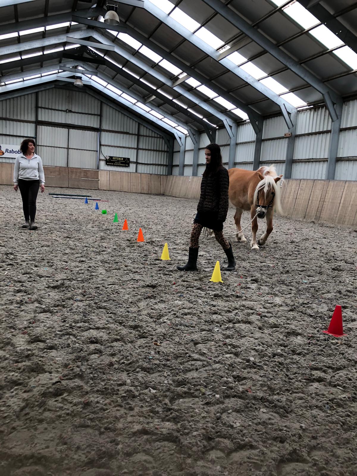 Vervolgens mocht ik een straatje maken waar ik Reliena doorheen mocht leiden. Dit was nog best lastig, sturing geven. En het paard in het straatje laten staan op mijn stopteken lukte uiteindelijk ook. Steeds bespraken we mijn mogelijke thema’s in mijn leven door mijn reacties op het paard. Dit voelde heel vertrouwd en gaf mij inzicht.